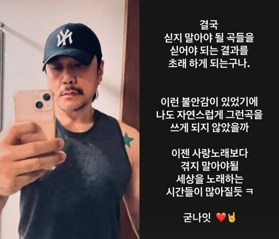 그는 "결국 싣지 말아야 될 곡들을 실어야 되는 결과를 초래하게 되는구나"라며 "이런 불안감이 있었기에 나도 자연스럽게 그런 곡을 쓰게 되지 않았을까. 이젠 사랑노래보다 겪지 말아야 될 세상을 노래하는 시간들이 많아질 듯. 굳나잇♥"이라고 글을 올렸다. 또 그는 "How does it feel"이라고 추가 게시물을 올렸다.