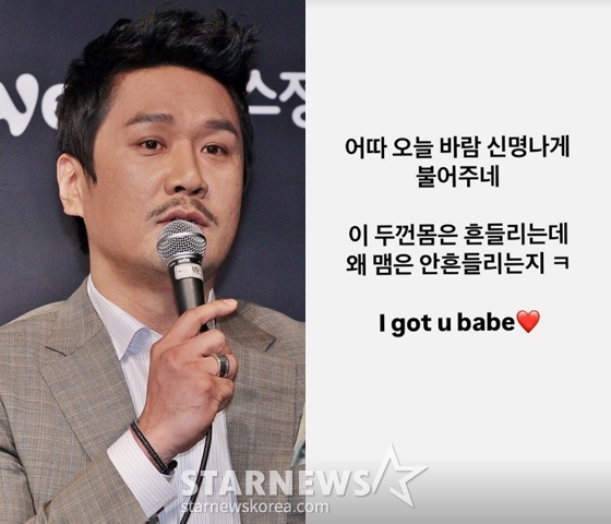 JK김동욱은 4일 자신의 SNS에 "어따 오늘 바람 신명나게 불어주네. 이 두껀몸은 흔들리는데 왜 맴은 안 흔들리는지. I got u babe♥"라는 글을 올렸다.