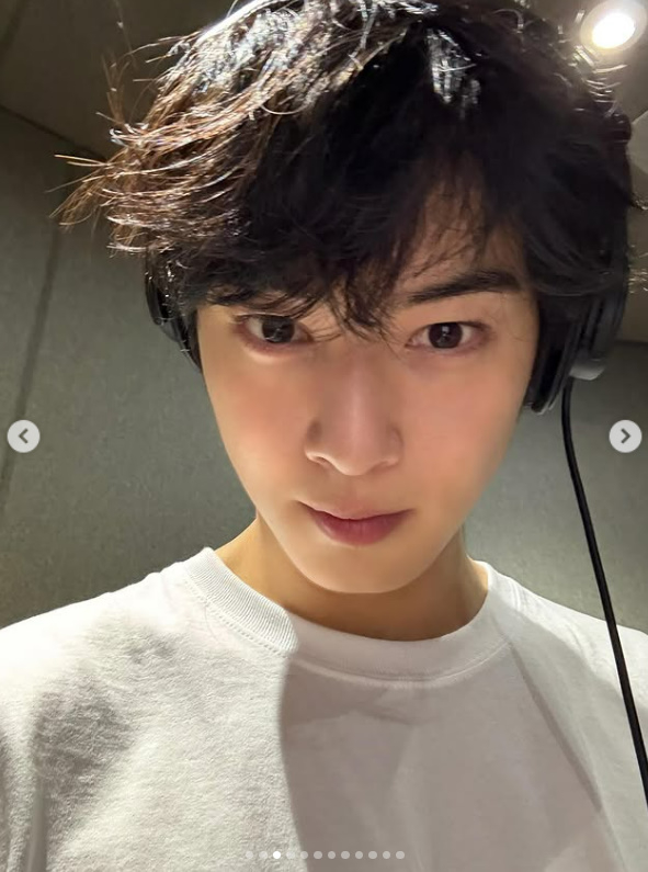 사진 속 차은우는 녹음실 부스에서 헤드셋을 끼고 훈훈한 비주얼을 마구 뽐내고 있는 모습. 특별한 메이크업을 하지 않아도 흠잡을 데 없이 완벽한 미모가 눈길을 끈다.
