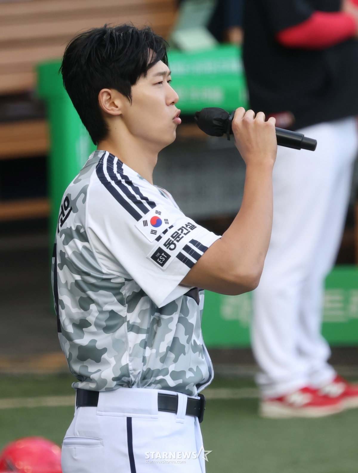 연예K-POP[★포토] 정승원 '팬텀싱어의 애국가 제창'발행 : 2025.06.04 ・ 18:37조회수 :잠실=김진경 대기자2025 신한 SOL Bank KBO리그 두산 베어스 대 KIA 타이거즈 경기가 4일 서울 잠실야구장에서 열렸다.가수 정승원이 두산 승리기원 시구에 앞서 애국가를 열창하고 있다.정승원은 JTBC 팬텀싱어4 우승을 차지한 4인조 그룹 리베란테의 멤버이며 현재는 솔로로 활동하고 있다.<저작권자 © 스타뉴스, 무단전재 및 재배포 금지>브리핑추천 기사김진경 대기자기자홈좋아요연예-K-POP의 인기 급상승 뉴스연예-K-POP의 최신 뉴스AD