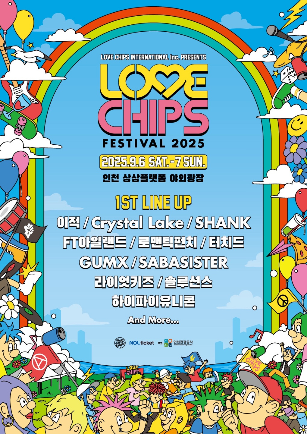 '러브칩스 페스티벌 2025'는 러브칩스인터내셔널(LOVE CHIPS INTERNATIONAL Inc)이 주최하고 인천관광공사가 후원하는 대규모 라이브 음악 축제로 오는 9월 6일과 7일 양일간 인천 상상플랫폼 야외광장에서 개최된다.