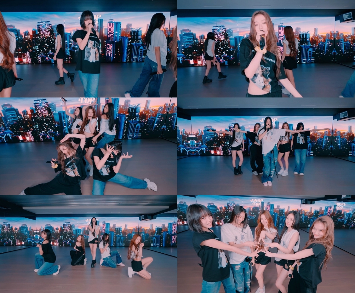 걸 그룹 MEOVV(미야오)가 'DROP TOP'(드랍탑)의 안무 영상을 공개했다.
