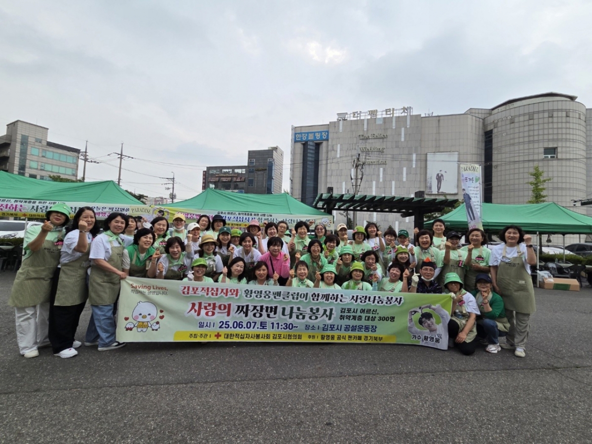 이번 행사는 대한적십자사 김포지구협의회와 황영웅 공식 팬클럽 '파라다이스' 경기북부 회원들이 공동 주최했으며, 지역 내 취약계층 어르신 300명을 대상으로 짜장면 식사를 제공하는 뜻깊은 자리였다.