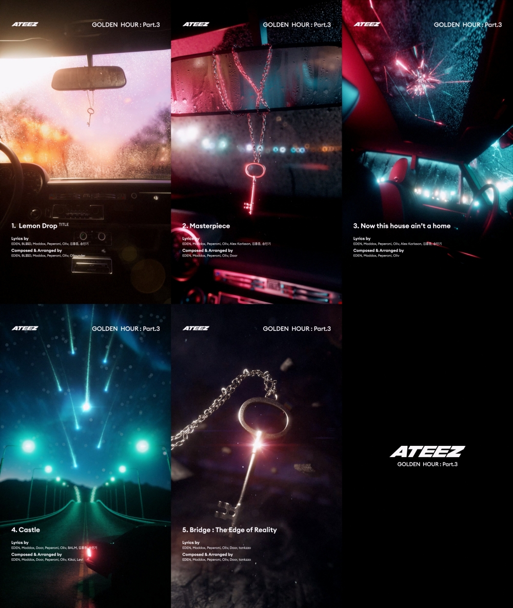 이 외에도 '마스터피스(Masterpiece)', '나우 디스 하우스 에인트 어 홈(Now this house ain't a home)', '캐슬(Castle)', '브리지 : 디 엣지 오브 리얼리티(Bridge : The Edge of Reality)'까지, 에이티즈의 진화한 음악성과 한계 없는 스펙트럼을 확인할 수 있는 다채로운 총 5곡이 '골든 아워 : 파트 3'에 알차게 수록됐다.