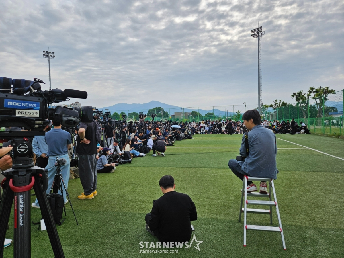 두 사람의 전역을 축하하기 위해 이날 이른 오전부터 춘천 일대는 방탄소년단의 공식 컬러인 보랏빛으로 물들었다. 국내뿐 아니라 해외 매체의 취재진들은 물론, 각국의 아미들로 현장은 인산인해를 이루고 있다.