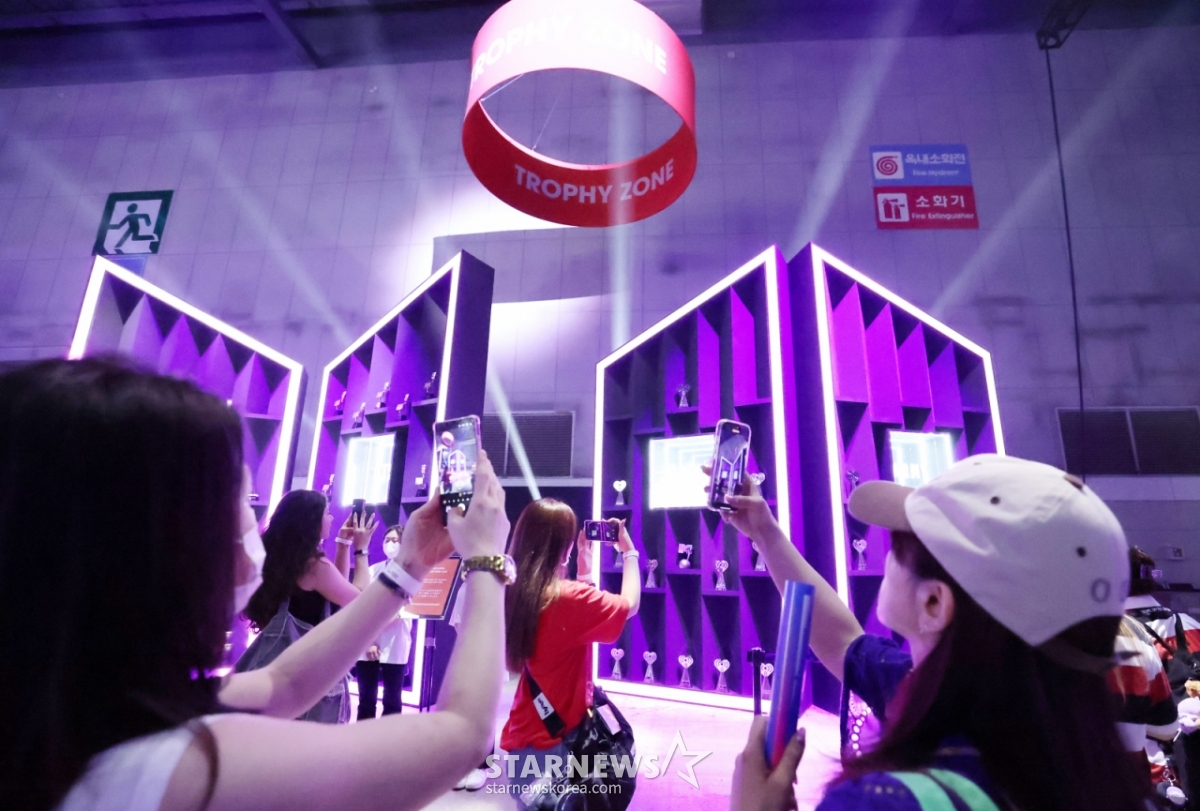 특히 킨텍스역은 일찌감치 아미들로 가득 찼다. 오프라인 행사 시작 전부터 수많은 아미들이 운집해 킨텍스 일대를 에워쌌다. 이들은 가방부터 머리 끈 등 방탄소년단의 공식색인 보라색을 활용한 패션으로 각자의 개성을 뽐냈다.