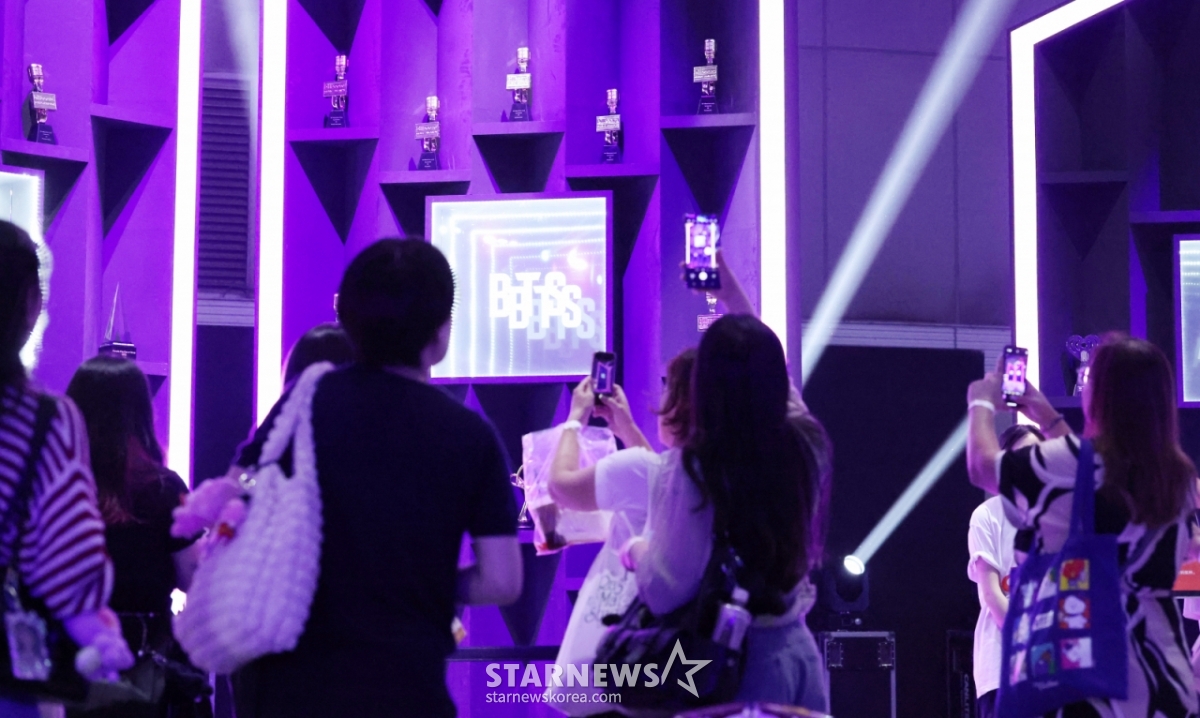 또 방탄소년단이 받은 트로피들을 전시하는 '트로피 존'에도 발길이 끊이지 않았다. 2013년 11월 제5회 '멜론뮤직어워드'에서 수상한 첫 신인상부터 2017년 미국 '빌보드 뮤직 어워드'에서 받은 트로피까지 방탄소년단의 발자취를 엿볼 수 있어 팬들의 자부심을 더했다.