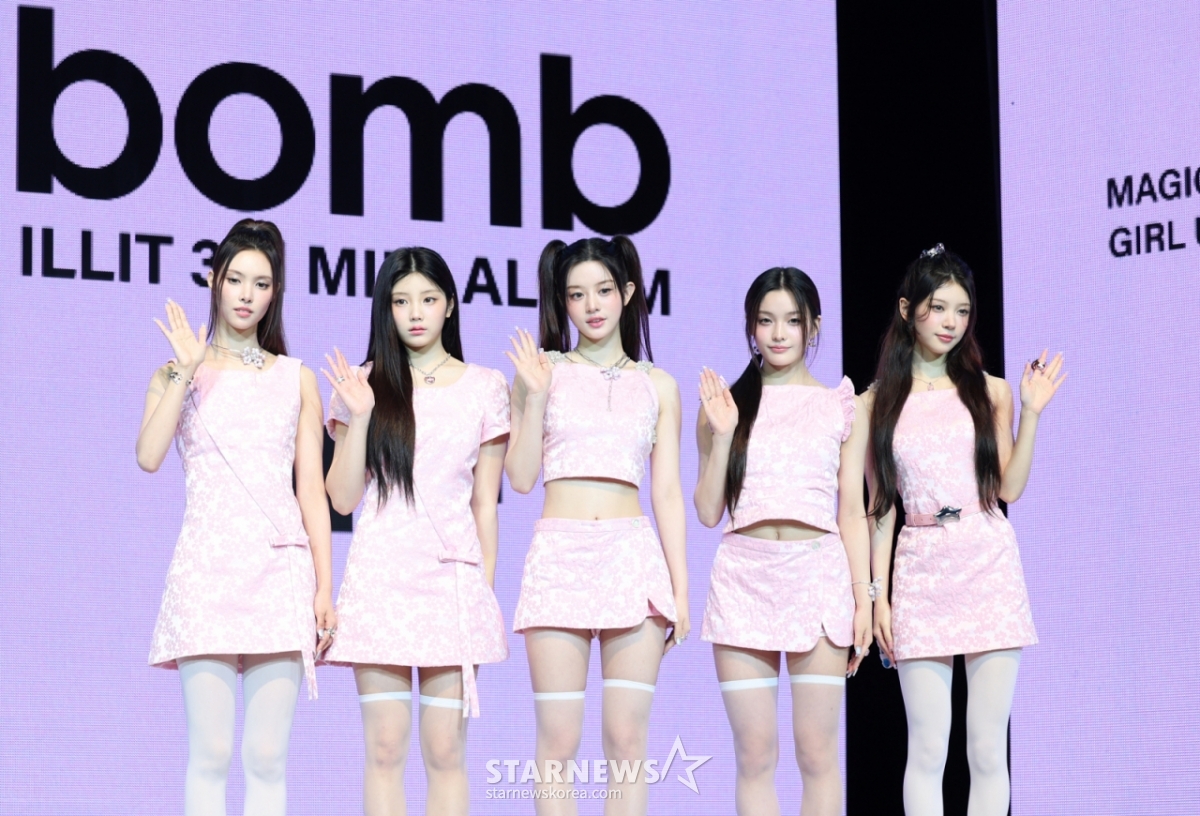 (서울=뉴스1) 권현진 기자 = 그룹 아일릿의 윤아(왼쪽부터)와 민주, 모카, 원희, 이로하가 16일 오후 서울 광진구 광장동 예스24 라이브홀에서 가진 세 번째 미니앨범 'bomb' 발매 기념 쇼케이스에 참석해 포즈를 취하고 있다. 2025.6.16/뉴스1 Copyright © 뉴스1. All rights reserved. 무단 전재 및 재배포, AI학습 이용 금지. /사진=(서울=뉴스1) 권현진 기자
