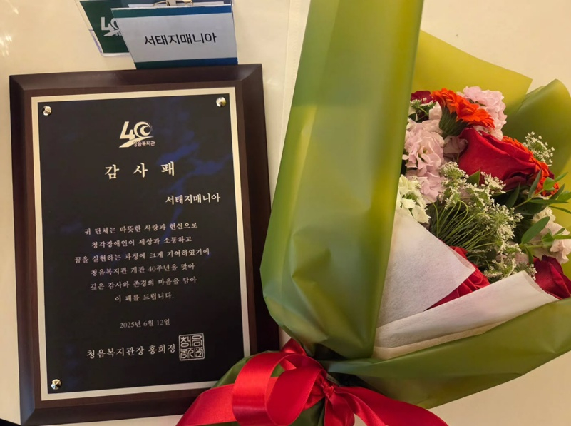 태지매니아 청음복지관 감사패 수상을 축하드립니다.