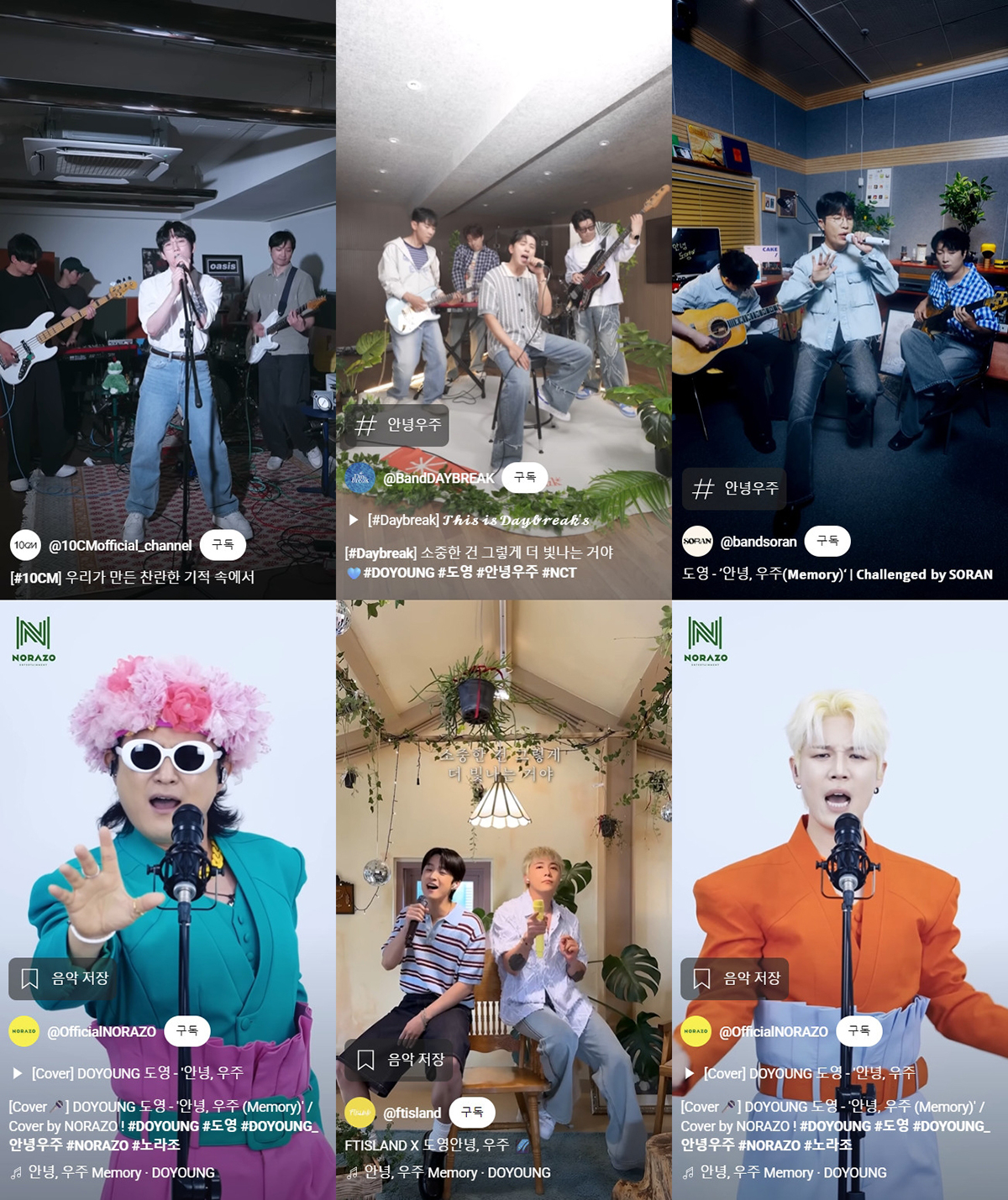 특히 록 장르 기반의 곡답게 십센치(10CM), 소란, 데이브레이크(Daybreak), 노라조, 이홍기와 이재진, 유다빈밴드 등 다양한 밴드들이 각자의 색깔로 '안녕, 우주 (Memory)'를 부르는 영상을 공개하며 듣는 재미를 더하고 있다.