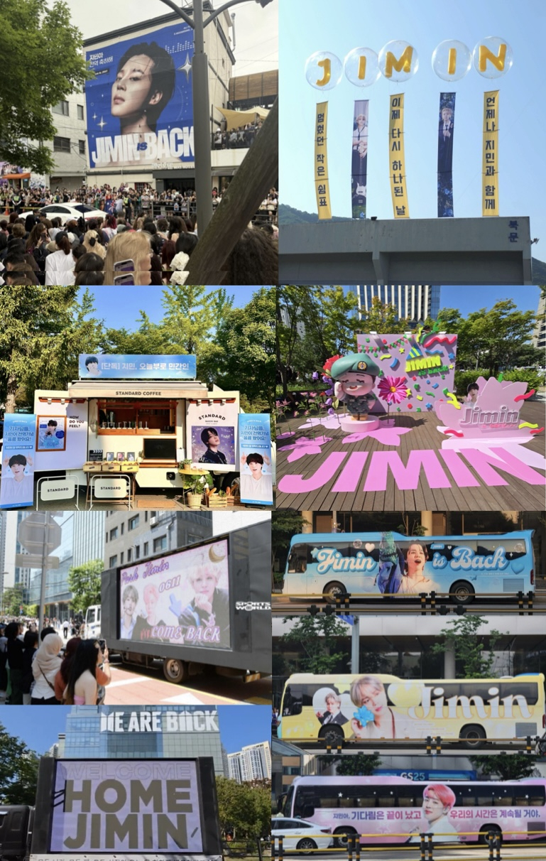 방탄소년단(BTS) 지민의 전역과 데뷔 12주년을 축하하는 팬들의 다채로운 이벤트가 전세계를 수놓으며 감동을 선사했다.