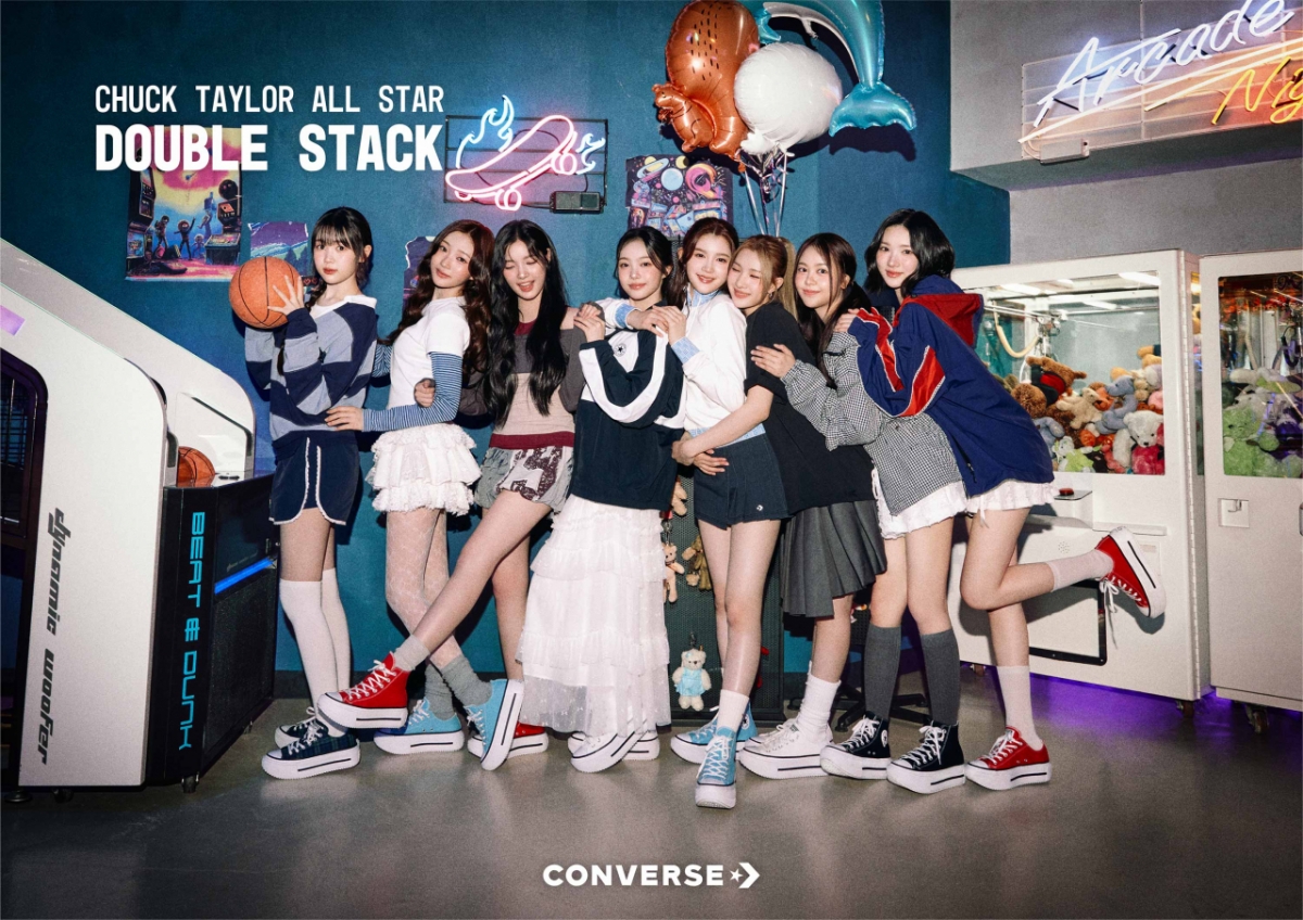 화보 속 하츠투하츠가 착용한 '척테일러 올스타 더블 스택(CHUCK TAYLOR ALL STAR DOUBLE STACK)'은 클래식 척의 감성을 담은 캔버스 어퍼와 놀라울 만큼 가벼운 더블 스택 플랫폼 디자인이 특징이다. 여기에 세련된 컬러감이 더해져 어떤 스타일에도 자연스럽게 어우러진다.
