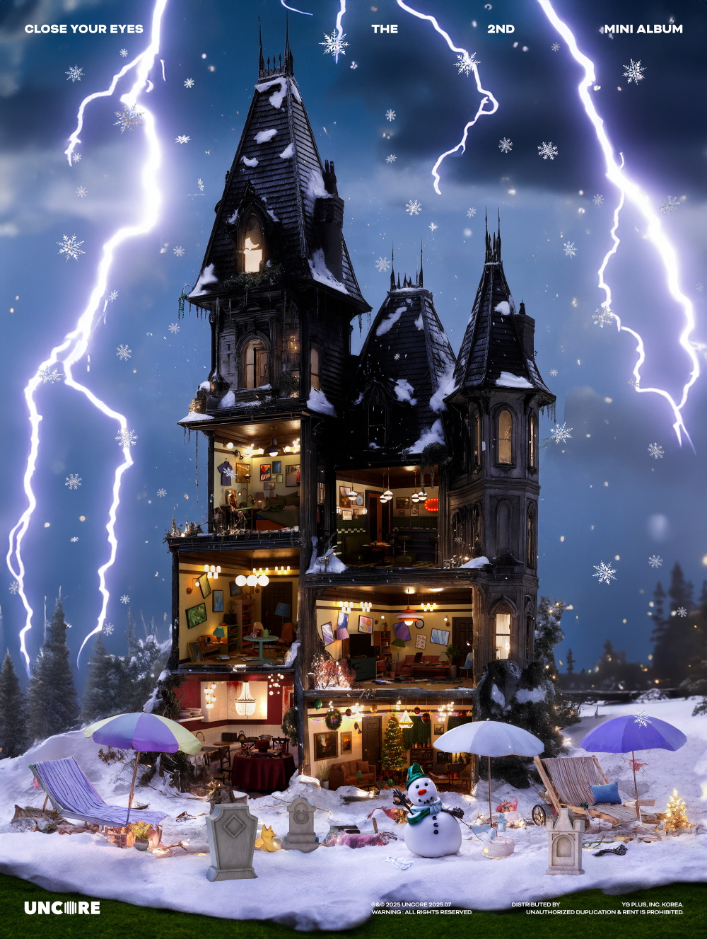 커밍순 포스터는 번개가 치고 눈이 내리는 배경 아래로 커다란 저택이 자리 잡고 있어 단번에 시선을 사로잡았다. 저택 앞에는 눈사람, 파라솔, 선베드 등 전혀 다른 무드의 아이템이 믹스 매치돼 컴백을 손꼽아 기다려온 글로벌 팬들의 호기심을 무한 자극했다.