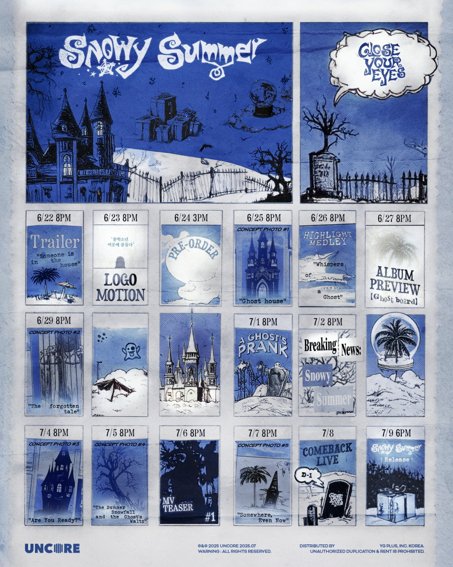 소속사 언코어는 6월 21일~22일 양일간 공식 SNS를 통해 미니 2집 '스노이 서머(Snowy Summer)'의 커밍순 포스터, 프로모션 스케줄러, 트레일러 영상을 공개하며 클로즈 유어 아이즈의 컴백 소식을 알렸다.