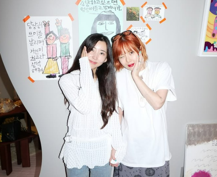 사진 속 현아는 권소현과 둘이 만나 친분을 다지는 모습이었다. 두 사람은 오랜만의 재회에서 반갑게 미소지으며 시간을 보내고 있었다.