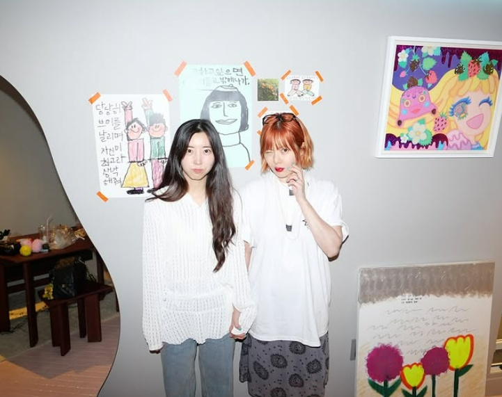 허가윤은 "일 끝내고 꽃다발 주러 집 앞에 찾아 온 언니. 뭐야 뭐야 감동. 우리들의 기념일 축하해"라고 글을 올렸다.