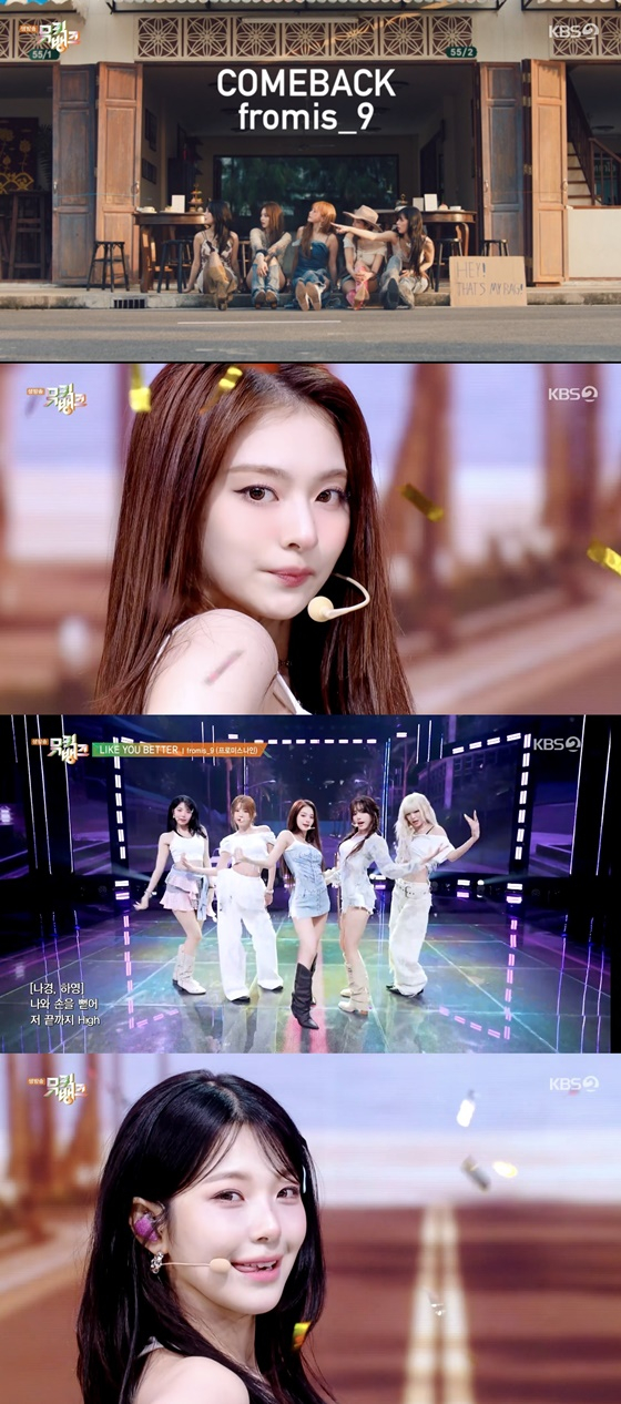 프로미스나인은 지난 27일 오후 방송한 KBS 2TV 음악 프로그램 '뮤직뱅크'에 출연해 새로운 미니 앨범 'From Our 20's'(프롬 아월 투엔티스)의 타이틀곡 'LIKE YOU BETTER'(라이크 유 배터) 무대를 진행했다.