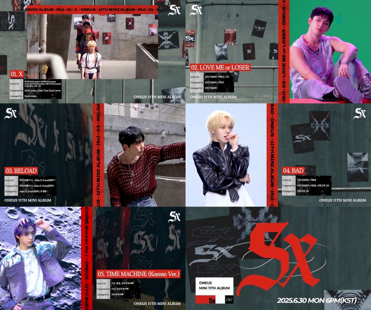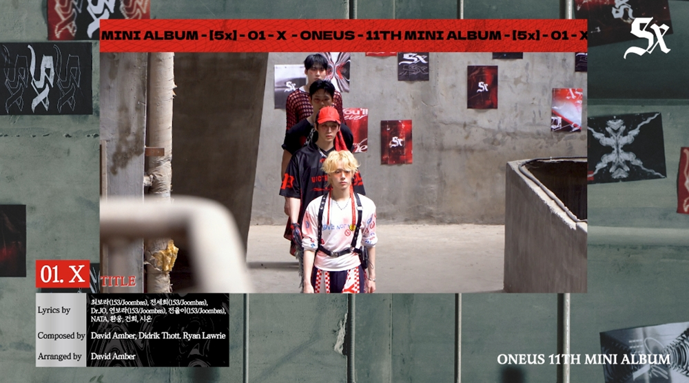 공개된 영상에는 '5x'의 콘셉트 포토 촬영에 몰입한 원어스의 모습이 담긴 가운데, 타이틀곡 'X'를 포함해 'LOVE ME or LOSER', 'RELOAD', 'BAD', 'TIME MACHINE (Korean Ver.)' 등 5곡의 하이라이트 음원 일부가 순차 재생됐다.