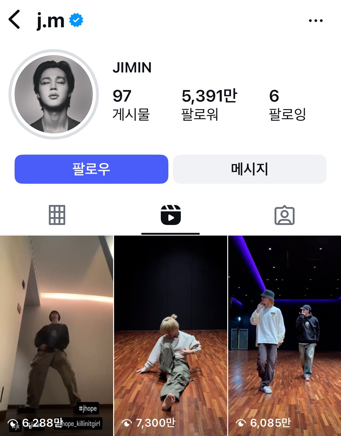 지민은 지난 6월 24일 자신의 인스타그램에 제대 후 처음으로 같은 그룹 멤버 제이홉의 싱글 'Killin' It Girl' 에 맞춰 오랜만에 댄스 챌린지 영상을 게재해 전세계 팬들의 이목을 집중시켰다.