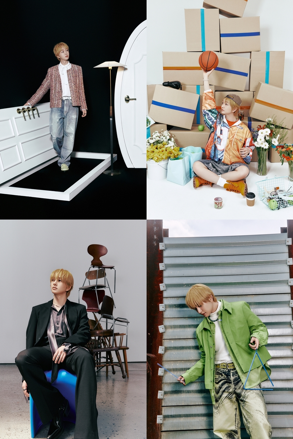공개된 사진 속 온유는 문과 농구공, 의자, 트라이앵글 등 다양한 오브제와 함께 포즈를 취하며 궁금증을 고조시켰다.