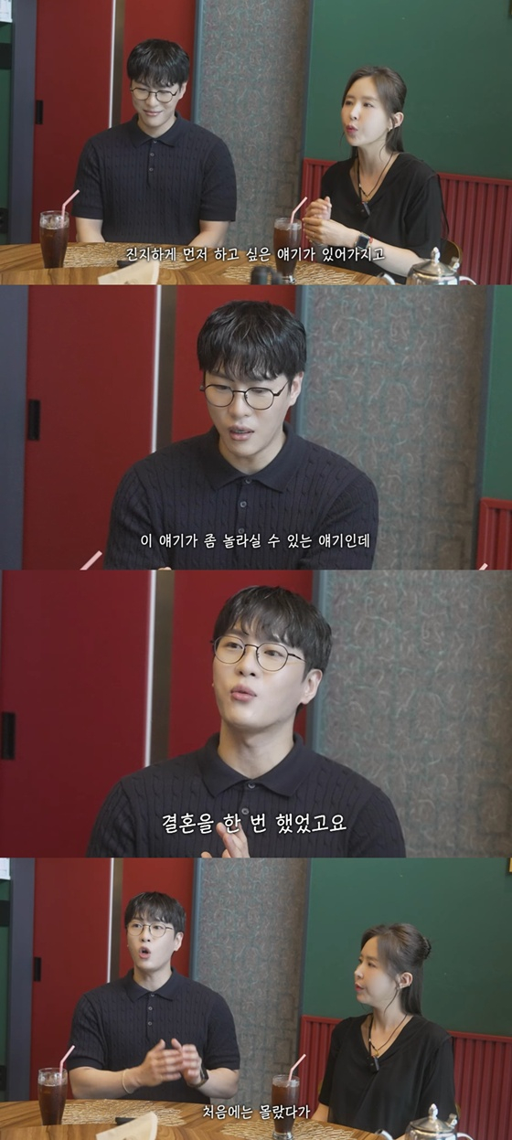 그룹 코요태 멤버 신지와 결혼을 앞둔 가수 문원이 돌싱이라고 고백했다.