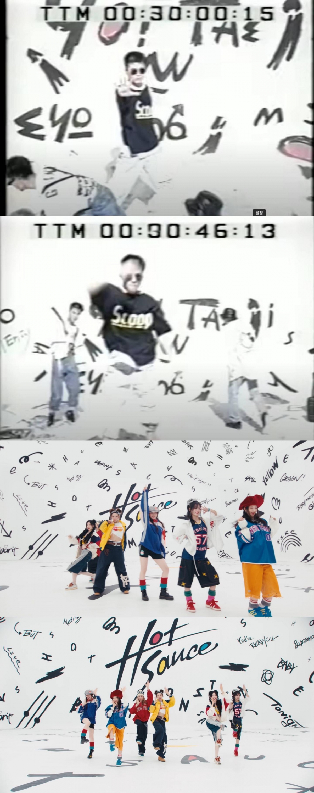 특히 YG 양현석 총괄 프로듀서가 활동했던 서태지와 아이들 1집 '난 알아요'의 뮤직비디오 세트를 오마주한 부분이 화제다. 세트에는 서태지외 아이들의 1집 앨범 커버에 적힌 서체를 활용한 'HOT SAUCE' 로고가 연신 눈길을 끈다.