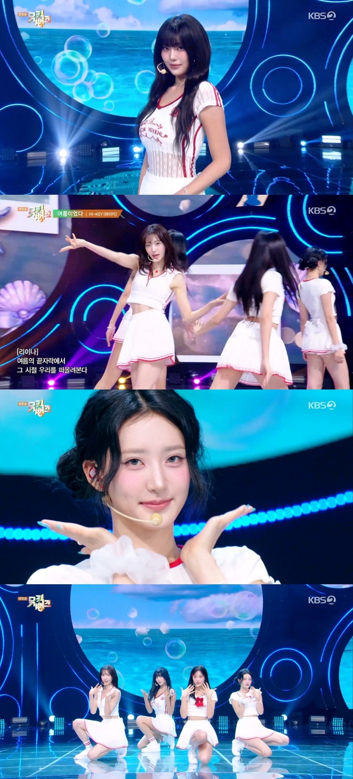 하이키(H1-KEY, 서이·리이나·휘서·옐)는 지난 4일 방송된 KBS 2TV '뮤직뱅크'에 출연해 미니 4집 'Lovestruck'(러브스트럭) 타이틀곡 '여름이었다' 무대를 펼쳤다.