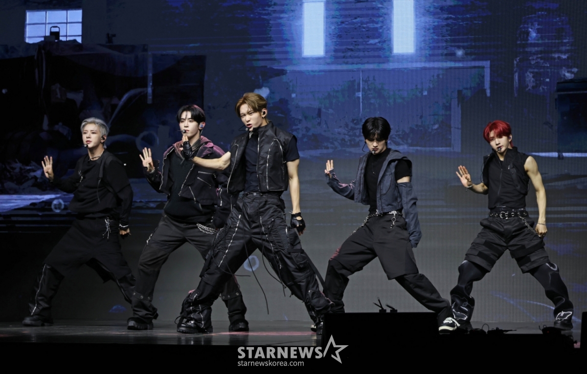 그룹 나우즈(NOWZ)가 9일 오후 서울 광진구 예스24라이브홀에서 진행된 첫 번째 미니 앨범 'IGNITION' 발매기념 쇼케이스에서 신곡을 선보이고 있다. /2025.07.09 /사진=이동훈 photoguy@