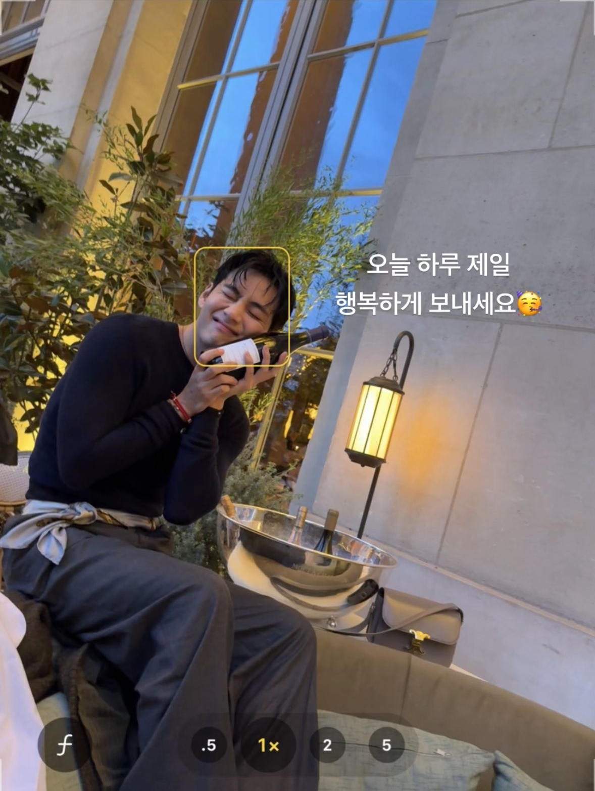 꽃받침을 하고 "해피 아미데이"라는 말과 함께 올린 사진은 팬들을 바라보는 듯 사랑스러운 눈빛을 하고 있다. 와인병을 들고 찍은 사진은 패션쇼에 함께 참석한 배우 박보검이 찍은 것으로 "오늘 하루 제일 행복하게 보내세요"라는 말이 팬들에게 깊은 감동을 선사했다.