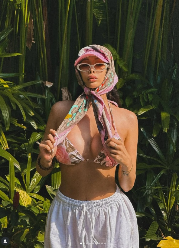 사진에는 제시가 꽃무늬 비키니를 입고 수영장에 있는 모습이 담겼다.