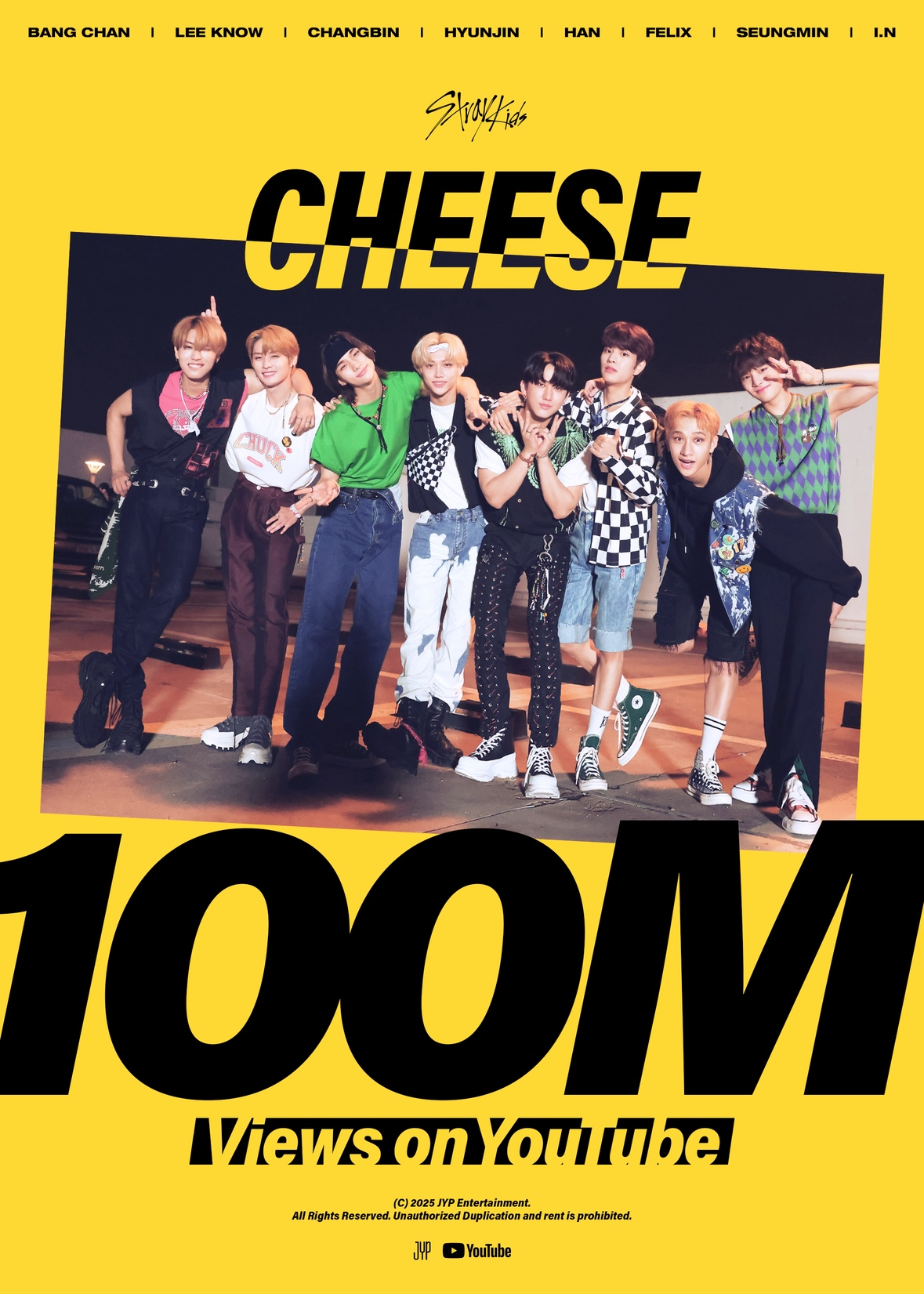 그룹 스트레이 키즈(Stray Kids)가 'CHEESE'(치즈) 뮤직비디오로 통산 17번째 유튜브 1억 뷰 기록을 달성했다.