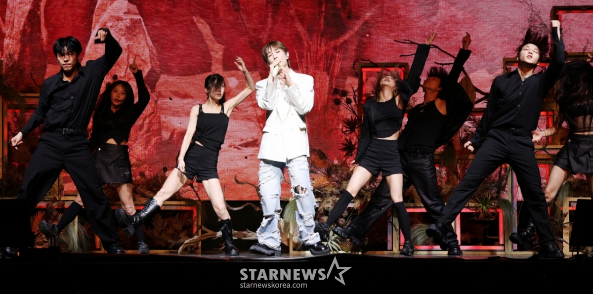 온유는 '애니멀' 속 떼창 포인트를 강조했다. "내가 생각했을 때 이 노래를 들으시면 신날 거라고 생각한다"는 온유는 "본인이 가지고 있는 본능을 깨어내게 만들 거다. 함께 즐겨주셨으면 좋겠다. 요즘에 공연을 많이 하다 보니까 떼창 포인트를 만들고 싶었는데 같이 따라할 수 있는 부분이 있다"라고 설명했다.