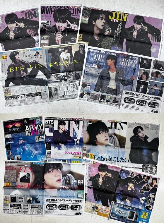 진은 첫 번째 단독 팬 콘서트이자 첫 번째 단독 월드투어 'RUNSEOKJIN_EP.TOUR' 를 진행 중이다. 일본의 5대 스포츠지 스포츠닛폰, 데일리 스포츠, 일간스포츠, 스포츠호치, 산케이스포츠에서 지난 12일~13일 양일간 1면을 할애해 진의 팬 콘서트 투어 소식을 전했다. 5개 신문사가 동시에 한국 솔로 가수를 1면에 단독 조명한 것은 진이 최초다. 12일~13일 팬 콘서트 투어 '#RUNSEOKJIN_EP.TOUR in JAPAN'이 열린 교세라 돔 오사카 인근 편의점 등에는 신문을 사려는 팬들의 줄이 끝없이 늘어섰다. 해당 신문은 곳곳에서 조기 품절되며 진의 최고의 인기를 증명했다.