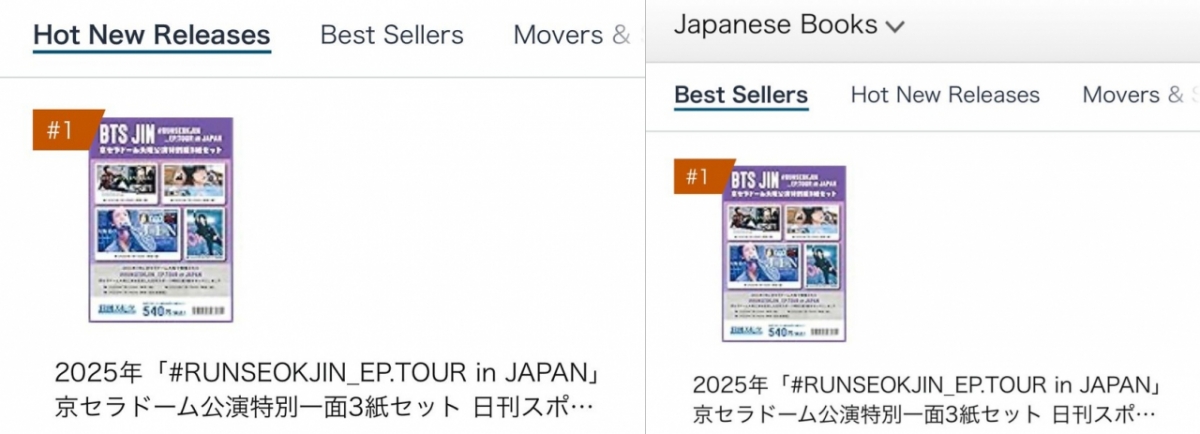 진의 일본 투어 소식을 1면으로 실은 신문은 아마존 재팬에서 핫 뉴 릴리즈 1위, 일본어 서적 베스트 셀러 1위에 오르며 압도적인 파워를 보였다.