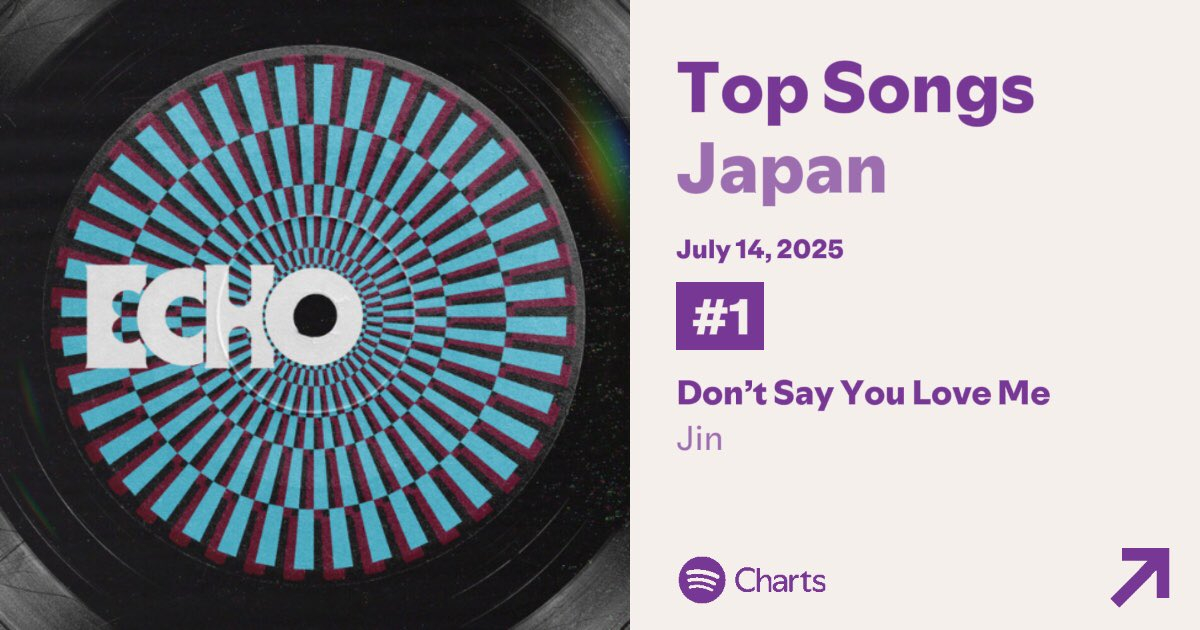 지난 5월 16일(한국 시각) 발매된 진의 솔로 미니 2집 'Echo'(에코)의 타이틀곡 'Don't Say You Love Me'(돈 세이 유 러브 미)는 7월 15일 발표된 세계 최대 음원 플랫폼 스포티파이(Spotify) 톱 송 재팬 차트에서 1위(7월 14일 자)를 차지하며 1위에 복귀했다. 진의 'Don't Say You Love Me'는 해당 차트에서 41일째 1위를 기록하며 최강의 인기를 자랑했다.