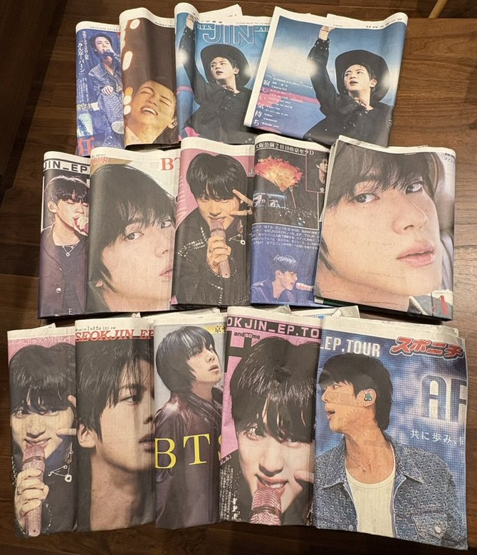 모든 콘서트 굿즈를 빠르게 올매진 시킨 것과 함께 한국 솔로 가수 최초로 일본의 5대 스포츠지 스포츠닛폰, 데일리 스포츠, 일간스포츠, 스포츠호치, 산케이스포츠에서 지난 12일~13일 양일간 1면으로 진의 팬 콘서트 투어 소식을 전한 것도 큰 화제가 됐다. 해당 신문은 곳곳에서 조기 품절되며 최강의 인기를 증명했다. 신문사 중 4곳은 14일에도 진의 팬 콘서트 투어 소식을 집중조명해 진의 독보적인 인기를 실감케 했다. 진의 일본 투어 소식을 1면으로 실은 신문은 아마존 재팬에서 핫 뉴 릴리즈 1위, 일본어 서적 베스트 셀러 1위에 오르는 등 독보적인 파워를 보였다.