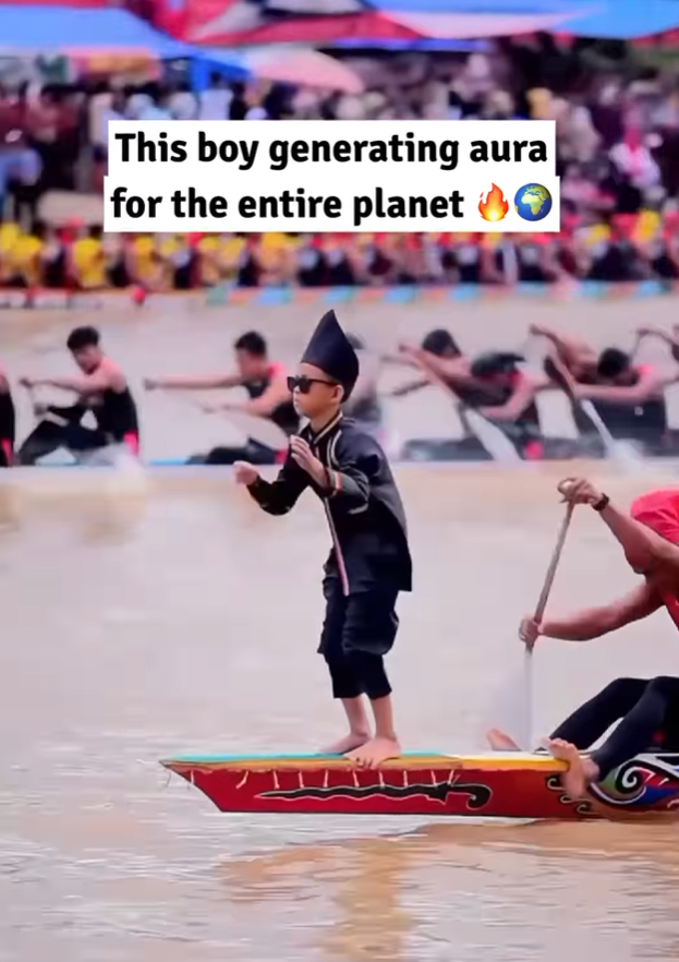 BTS 두 멤버가 선보인 '아우라 파밍'은 인도네시아 리아우 지역의 전통 배 경주 '파쿠 잘루르(Pacu Jalur)'에서 시작된 밈이다. 11살 소년 라이얀 아르칸 디카가 경주를 위해 강위를 달리는 보트 맨 앞에서 무표정한 얼굴로 양손을 좌우로 교차시키거나 물레방아처럼 빙글빙글 돌리며 춘 일종의 응원 춤이 '아우라 파밍(Aura Farming)'이라는 이름으로 소셜미디어에 소개되면서 갑자기 전 세계적인 밈이 되었다.