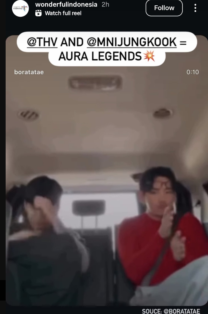 BTS 두 멤버의 아우라 파밍 참여는 팬들 사이에서 큰 호응을 얻었다. 팬들을 더욱 놀라게 한 것은 인도네시아 관광청이 공식 소셜미디어 계정(@wonderfulindonesia)을 통해 정국과 태형의 아우라 파밍 영상을 리포스트하며 두 멤버를 태그한 것이다. 그들이 붙인 캡션은 간단명료했다: "아우라 레전드(Aura legends)".