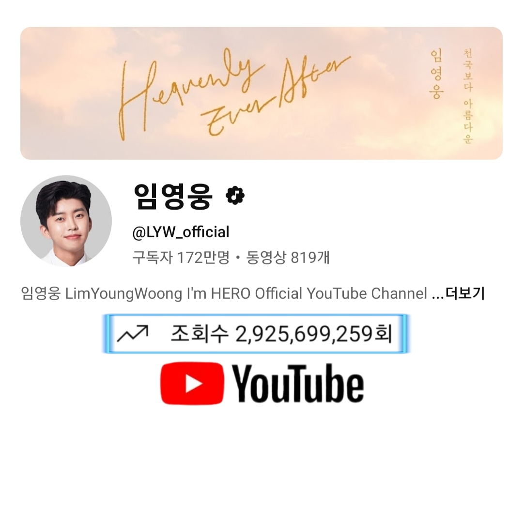 임영웅 공식 유튜브 채널 '임영웅'은 7월 20일 기준 총조회수 29억 2000만 뷰를 넘어섰다.