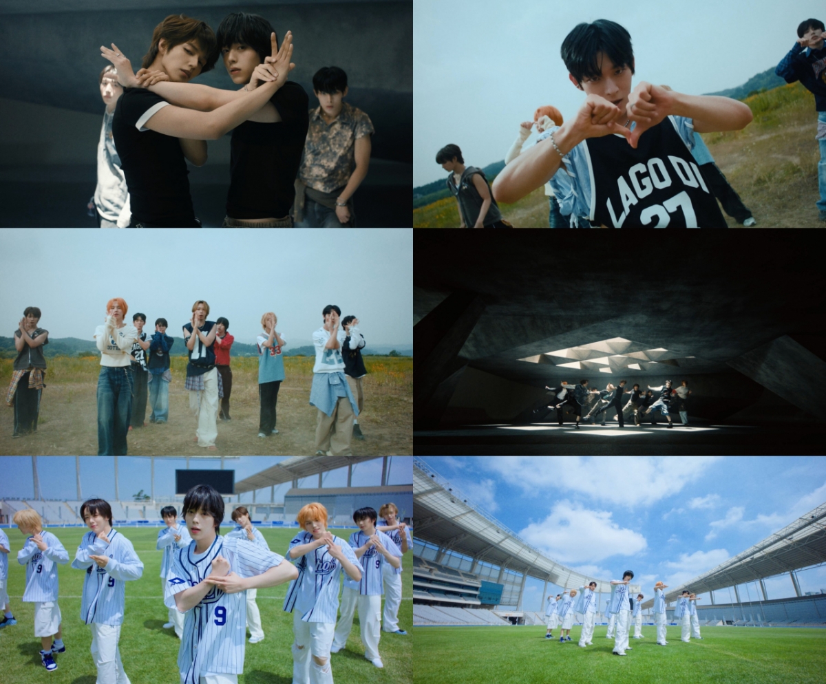 영상 속 멤버들은 그룹을 상징하는 9개의 다이아몬드 심볼 세트부터 들판, 스타디움 등 다양한 공간을 배경으로 퍼포먼스를 펼쳤다. 각기 다른 개성을 자랑하는 멤버들이 마치 한 몸처럼 어우러진 완전체 군무는 보는 이들의 짜릿한 쾌감을 선사했다.