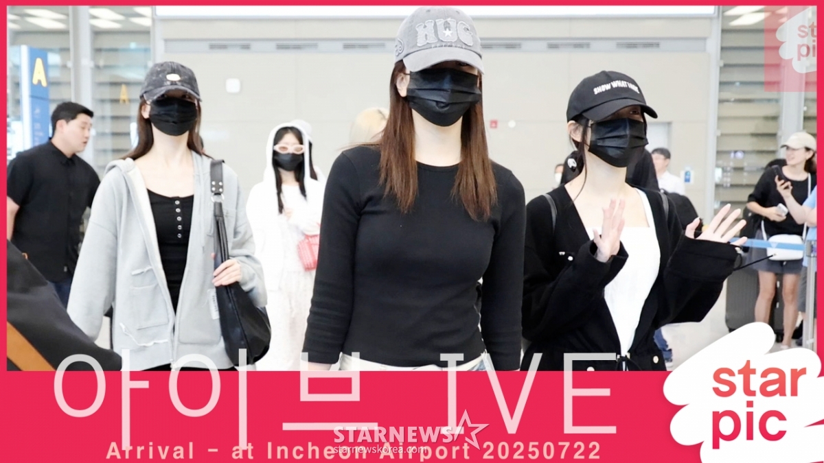 연예K-POP아이브 '잘 다녀왔어요!'[★영상]발행 : 2025.07.22 ・ 16:09인천국제공항=임성균 기자그룹 아이브(IVE) 유진, 가을, 레이, 원영, 리즈, 이서가 파리 룰라팔루자 공연을 마치고 22일 오후 인천국제공항을 통해 입국하고 있다. 2025.07.22<저작권자 © 스타뉴스, 무단전재 및 재배포 금지>공항패션입국아이브IVE장원영안유진추천 기사임성균 기자기자홈좋아요 연예-K-POP의 인기 급상승 뉴스연예-K-POP의 최신 뉴스