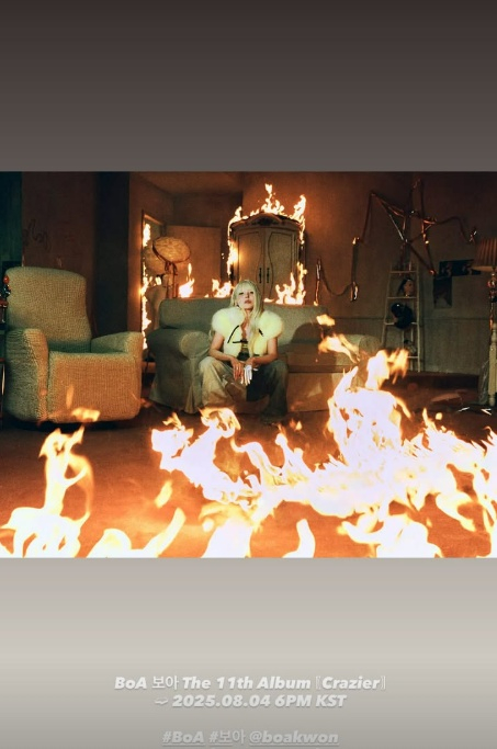 보아는 23일 자신의 계정에 오는 8월 4일 발표하는 정규 11집 '크레이지어'(Crazier) 관련 이미지를 게재했다.