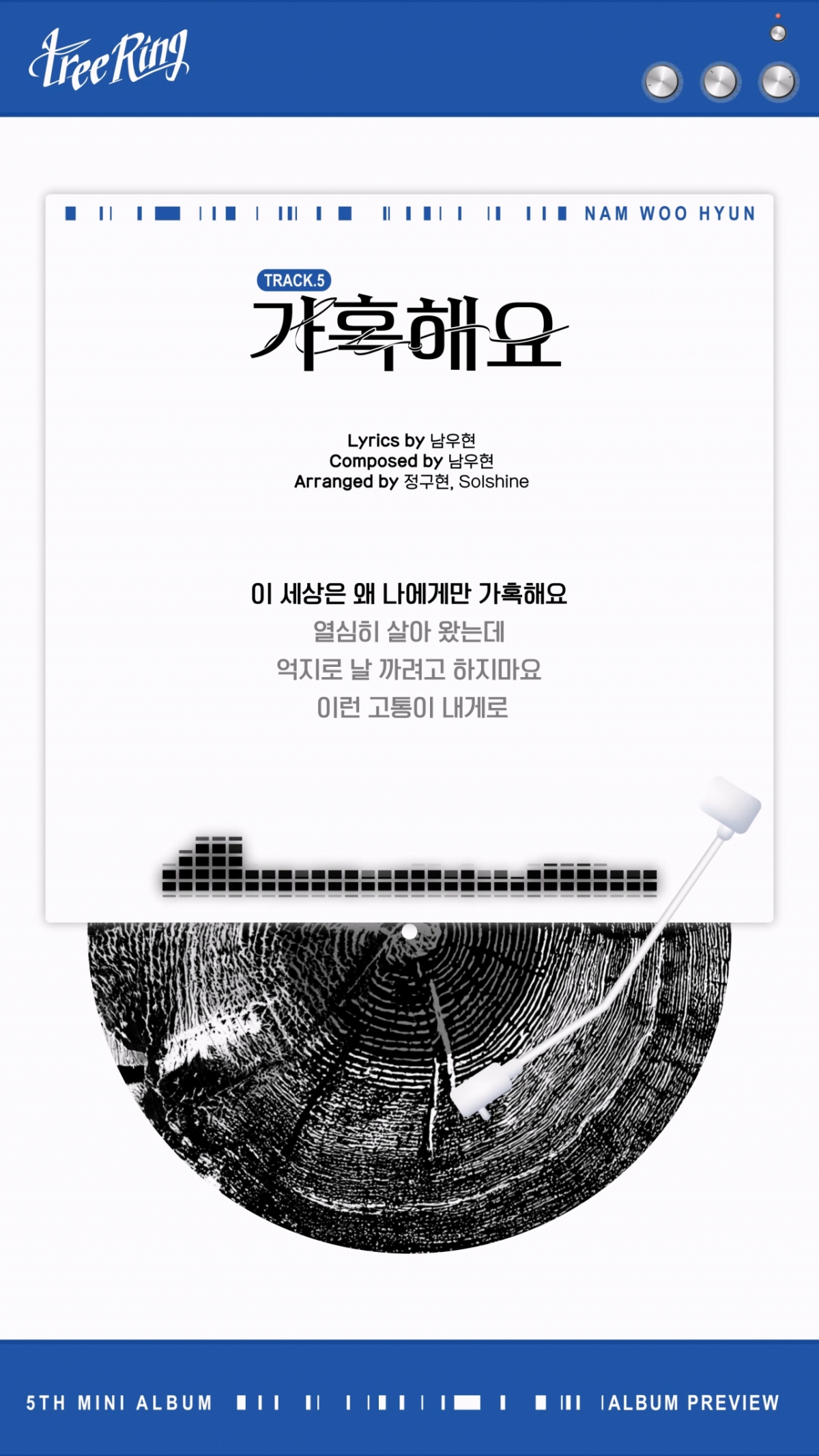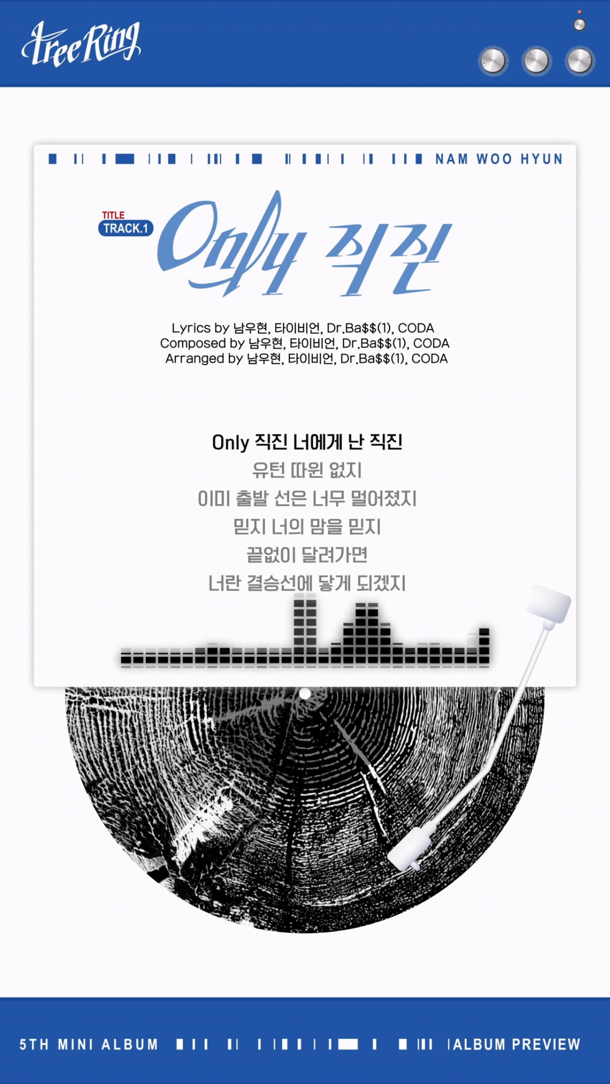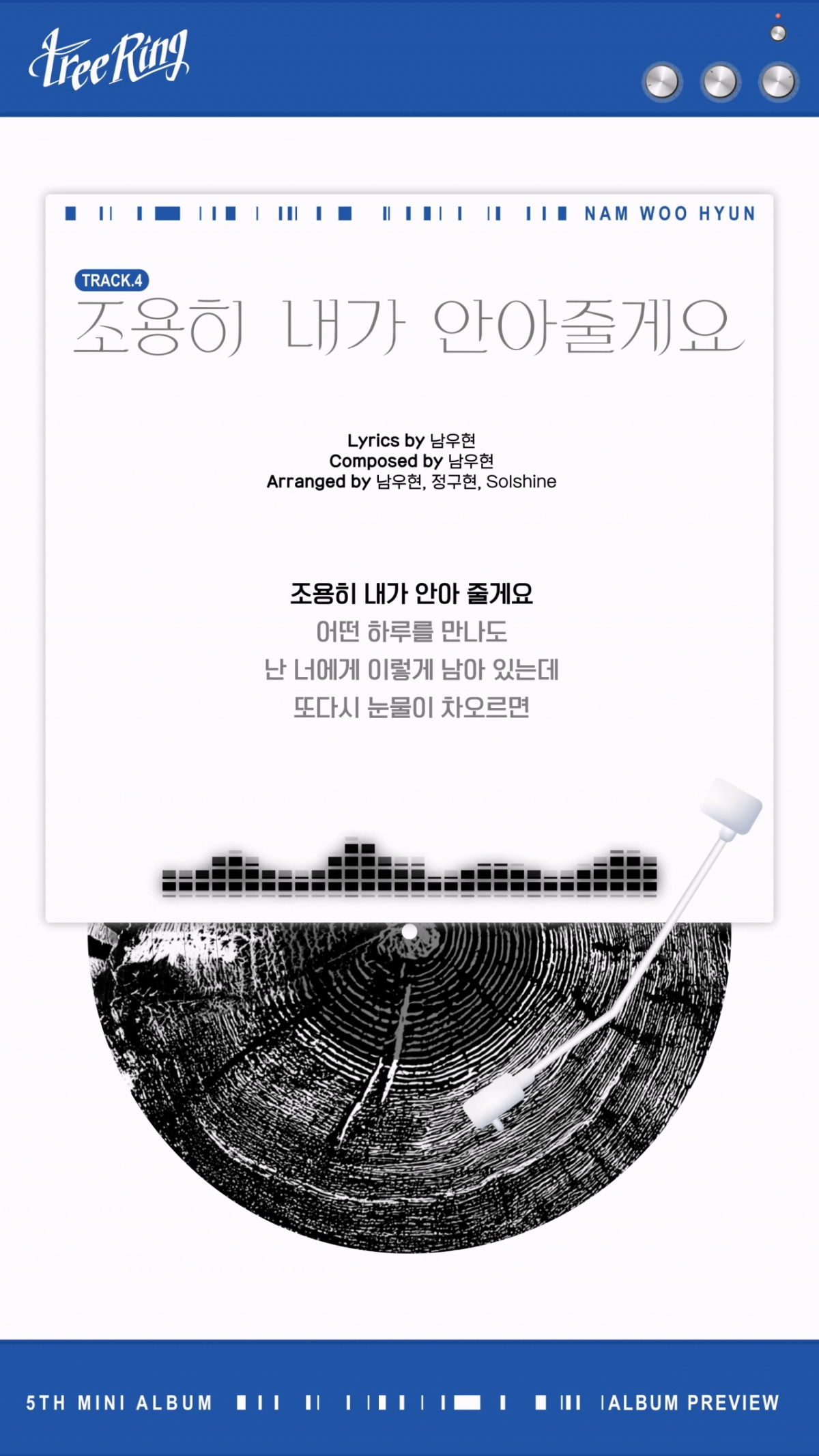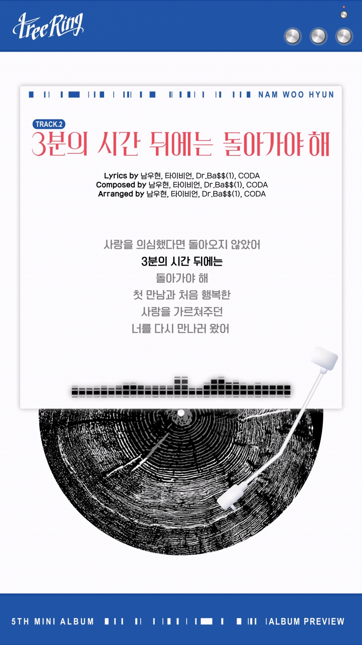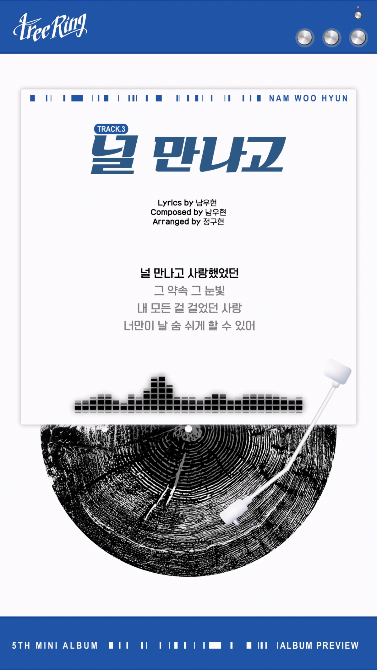 이와 더불어 잘린 나무의 단면이 LP판이 돼 돌아가면서 음악이 재생되는 화면과 각 트랙별 가사가 함께 흘러나와 눈과 귀를 동시에 사로잡았다. '트리 링' 앨범명에 걸맞은 영상과 남우현의 환상적인 보이스가 어우러진 프리뷰 영상의 유니크한 무드가 새 앨범 기대감을 한껏 끌어올렸다.