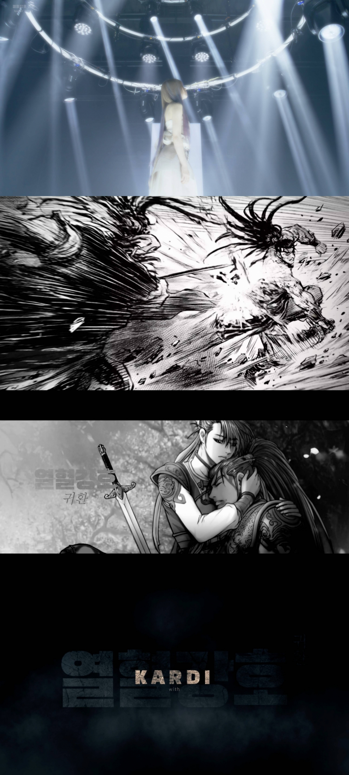 첫 번째 티저에서는 '열혈강호: 귀환'과 카디의 컬래버레이션을 예고한다. 먼저 흑백 일러스트로 재현된 원작 만화 '열혈강호'의 치열한 전투 신이 펼쳐진다. 여기에 웅장한 오케스트라 선율이 더해져 무협 게임 특유의 긴장감과 몰입도를 극대화한다. 말미에는 ''열혈강호: 귀환' with 카디'라는 타이포가 등장해 게임과 음악이 만나 만들어낼 시너지에 대한 호기심을 자극한다.