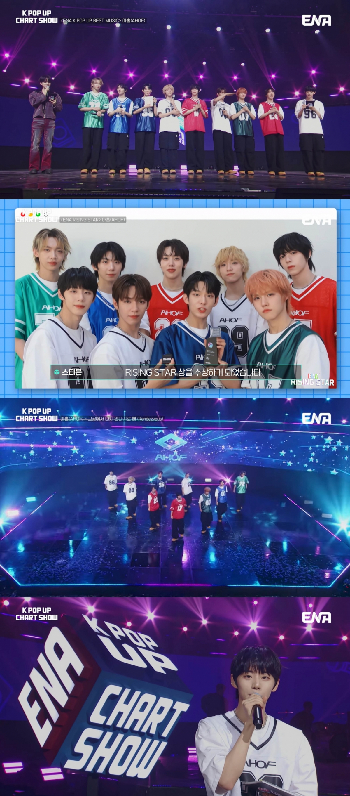 이날 아홉(AHOF)은 '미완의 청춘' 에너지를 담은 무대뿐만 아니라 수상자로도 이름을 올렸다. 이들은 '그곳에서 다시 만나기로 해(Rendezvous)'로 ENA 라이징 스타상과 ENA 케이팝업 베스트 뮤직상을 연이어 수상했다.