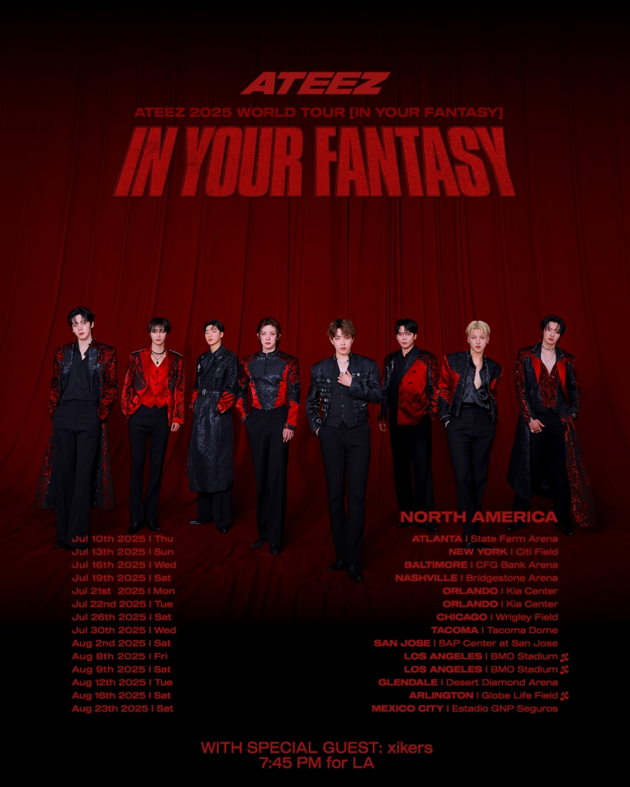 소속사 KQ엔터테인먼트는 지난 25일 오후 11시 SNS를 통해 '에이티즈 2025 월드 투어 '인 유어 판타지'(ATEEZ 2025 WORLD TOUR 'IN YOUR FANTASY')' 북미 투어 일정이 담긴 포스터를 공개하고 싸이커스의 출격 소식을 알렸다.