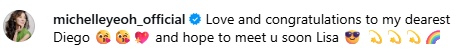 이날 여러 사진 중 양자경은 프레데릭 아르노와 함께한 사진도 공개했다. 여기에 그는 "내 사랑하는 디에고에게 사랑과 축하를 보낸다"라며 "리사 또한 곧 만날 수 있길 바란다"라고 글을 남겼다.