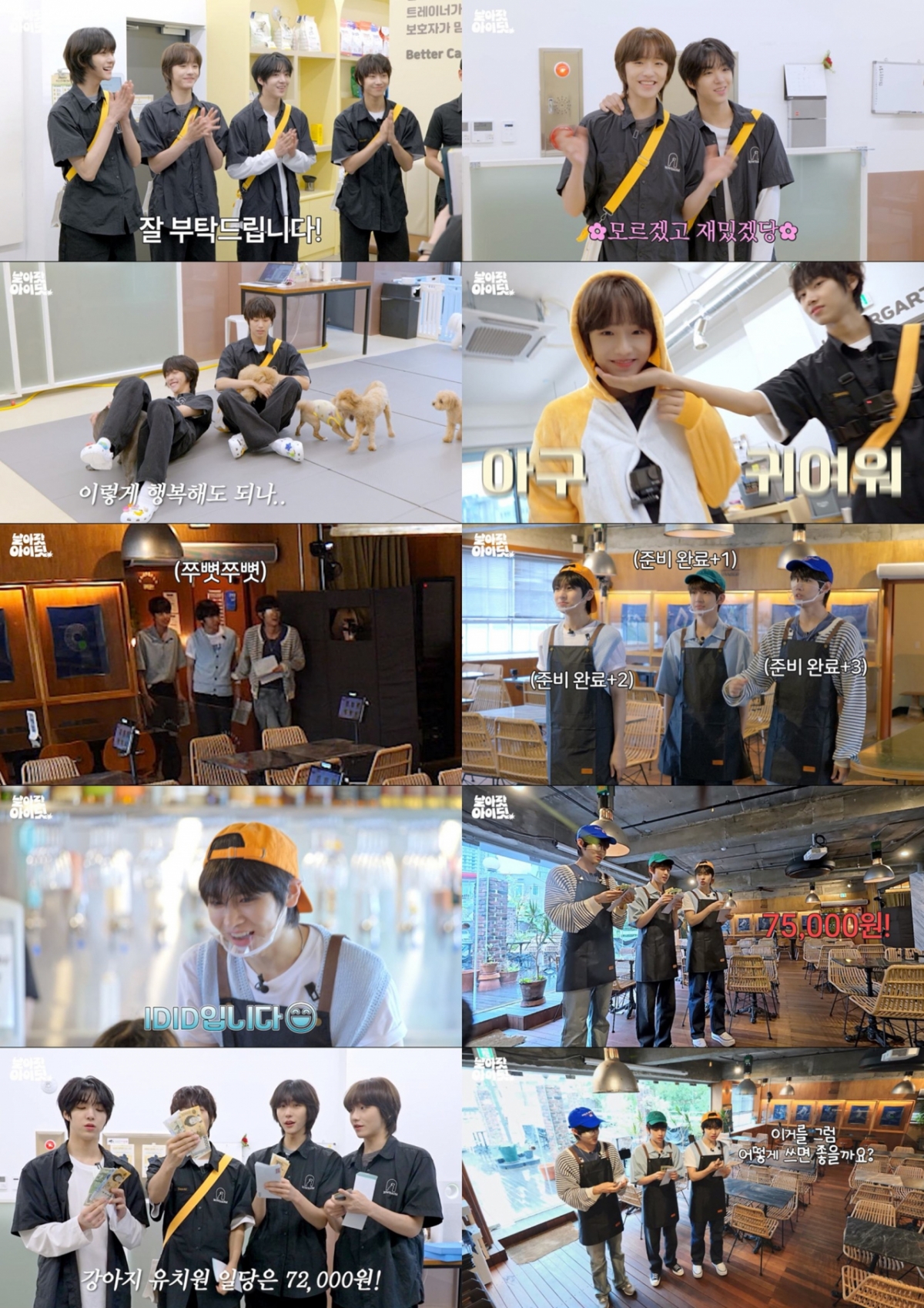 멤버들은 아이딧(IDID)의 마스코트 '두두(DODO)'가 보낸 전령을 통해 강아지 유치원과 수제버거 맛집으로 나뉘어 아르바이트에 나섰다. 장용훈, 김민재, 추유찬은 수제버거 맛집에서, 박원빈, 박성현, 백준혁, 정세민은 강아지 유치원에서 오전부터 오후까지 서툴지만, 최선을 다해 일했다.