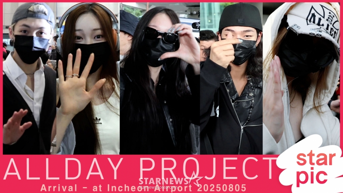 연예K-POP올데이프로젝트 '구름팬들과 함께 입국'[★영상]발행 : 2025.08.05 ・ 19:01인천국제공항=임성균 기자그룹 올데이프로젝트 (ALLDAY PROJECT) 애니, 타잔, 베일리, 영서, 우찬이 케이콘 LA 공연을 마치고 5일 오후 인천국제공항을 통해 입국하고 있다. 2025.08.05<저작권자 © 스타뉴스, 무단전재 및 재배포 금지>공항패션입국올데프올데이프로젝트ALLDAYPROJECTADP추천 기사임성균 기자기자홈좋아요 연예-K-POP의 인기 급상승 뉴스연예-K-POP의 최신 뉴스