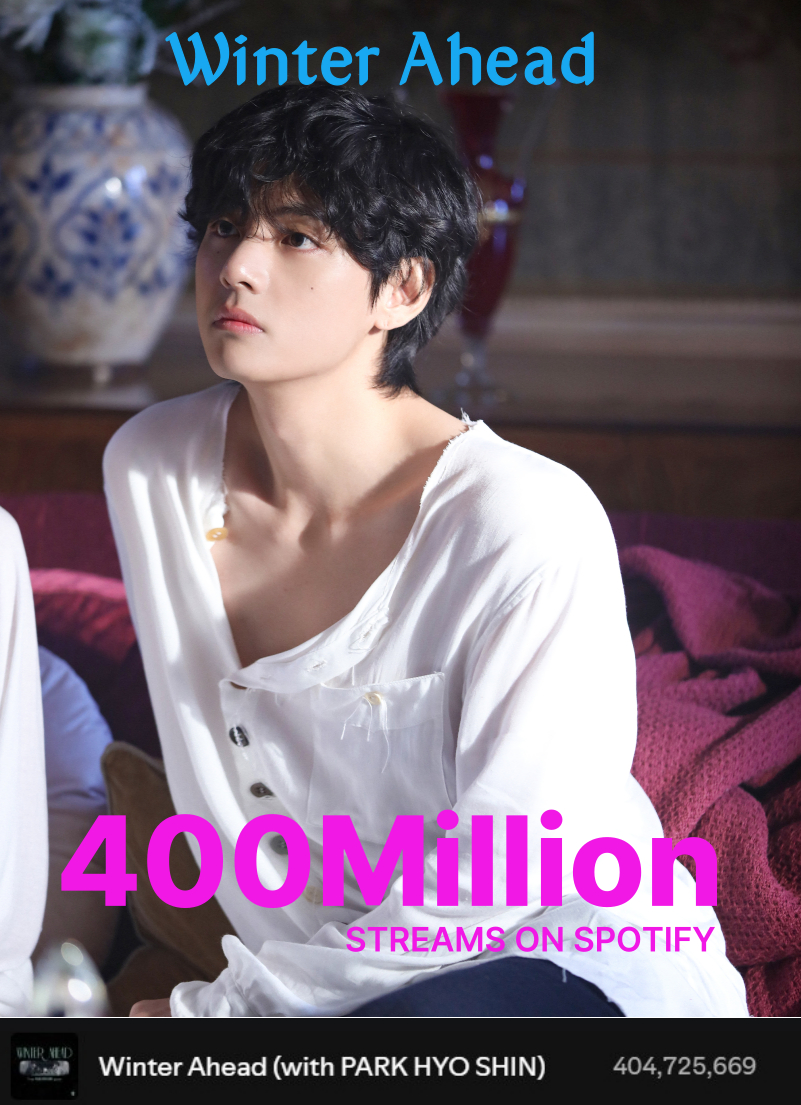 방탄소년단(BTS) 뷔의 '윈터 어헤드가 스포티파이(Spotify)에서 4억 스트리밍을 기록하며 인기를 빛냈다.